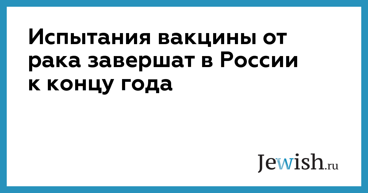 Доклинические испытания вакцины от рака, разработанной специалистами Национального исследовательского центра эпидемиологии и микробиологии им. Гамалеи, завершаться в России к концу года. Об этом рассказал ТАСС министр здравоохранения России Михаил Мурашко. «Сейчас вакцина проходит доклинические исследования, первые результаты которых рассчитываем получить уже к концу года и после приступить к клиническим испытаниям», — сообщил министр.