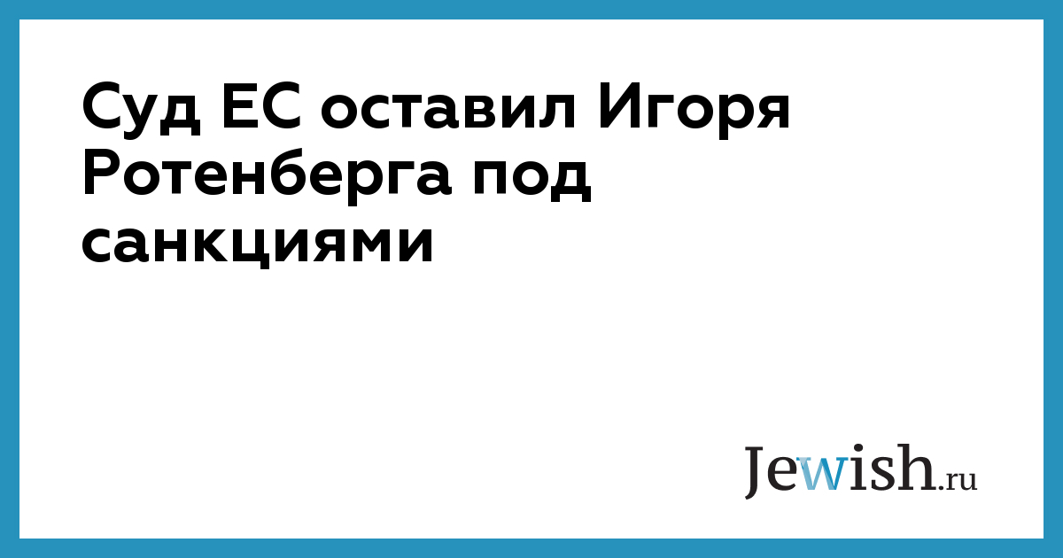 Суд общей юрисдикции Евросоюза, базирующийся в Люксембурге, рассмотрев в среду, 19 июня, иск российского бизнесмена Игоря Ротенберга, оставил в силе введенные против него санкции, сообщают европейские издания. Иск был подан в ноябре 2022 года.