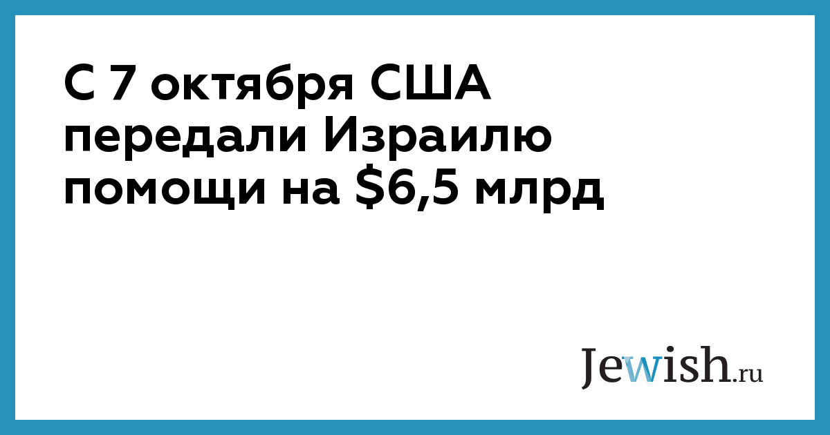 С 7 октября США передали Израилю помощи на $6,5 млрд