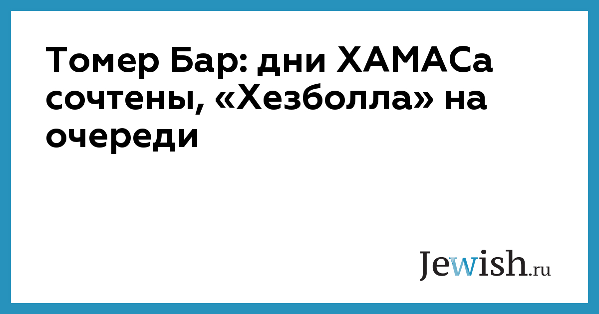 Томер Бар: дни ХАМАСа сочтены, «Хезболла» на очереди