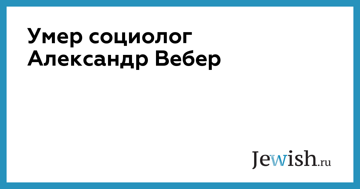 В Москве на 96-м году жизни скончался ученый-социолог, доктор исторических наук, доцент Александр Вебер. Об этом сообщила администрация института социологии РАН, в котором работал Вебер.