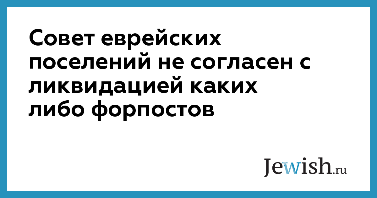 Совет еврейских поселений не согласен с ликвидацией каких либо форпостов