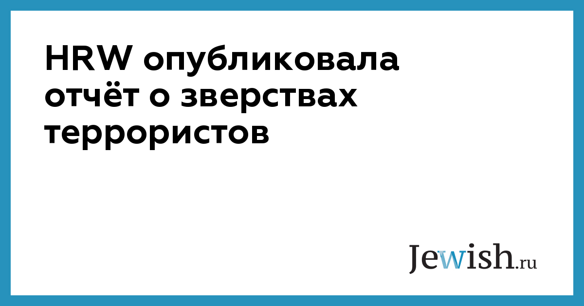 Организация Human Rights Watch (HRW), осуществляющая мониторинг, расследование и документирование нарушений прав человека в ряде стран мира, опубликовала отчет о преступлениях, совершенных террористами ХАМАСа и «других палестинских группировок» 7 октября в населенных пунктах на юге Израиля. В отчете отмечается, что «правительства стран, имеющих влияние на вооруженные группировки, должны настаивать на немедленном освобождении заложников и привлечении виновных в преступлениях 7 октября к ответственности».