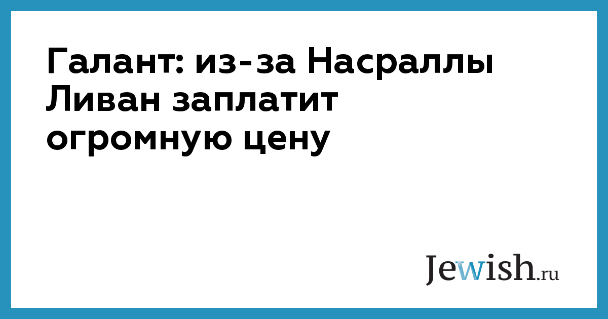 «Если все пойдет по этому сценарию – Насралла втянет Ливан в ситуацию, из-за которой страна вынуждена будет заплатить огромную цену. Они даже вообразить себе не могут, какие их могут ожидать последствия, – цитирует Галанта Times of Israel. – Может начаться полномасштабная война. И это не предположения, а реальность».