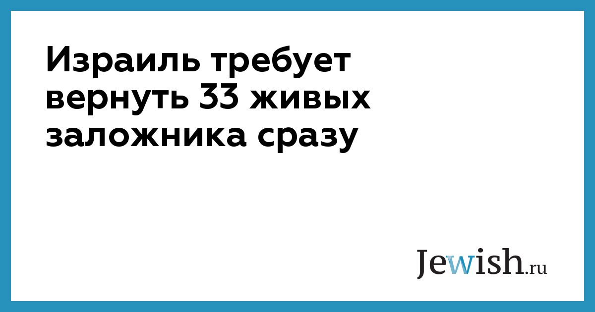 Вопреки слухам, что Израиль готов, чтобы на первом этапе террористы вернули 18 живых человек и 15 тел погибших, распространившимся в СМИ, еврейское государство настаивает: нужны 33 живых человека. В список, как и обговаривалось ранее, входят женщины, в том числе военнослужащие, дети и пожилые люди, а также страдающие от болезней либо травм.