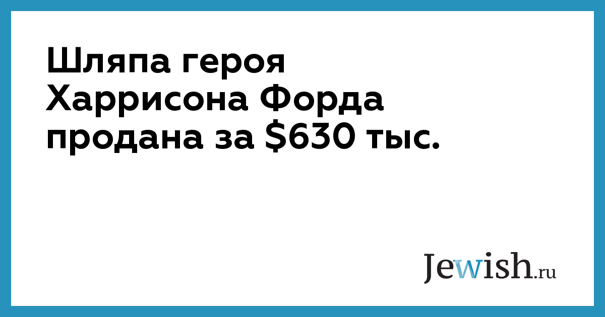 Шляпа героя Харрисона Форда продана за $630 тыс.
