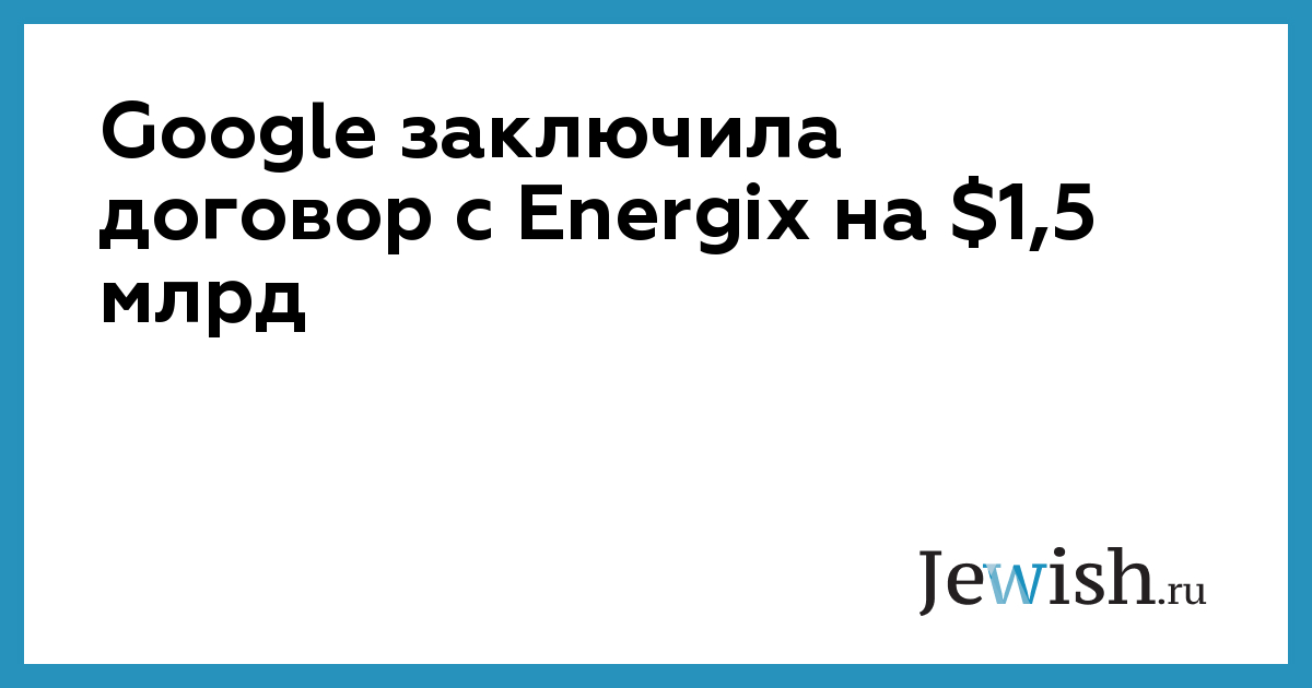 Израильская компания Energix Renewable Energies, специализирующаяся на строительстве солнечных и ветряных электростанций, объявила о подписании долгосрочного соглашения о налоговом сотрудничестве с корпорацией Google.