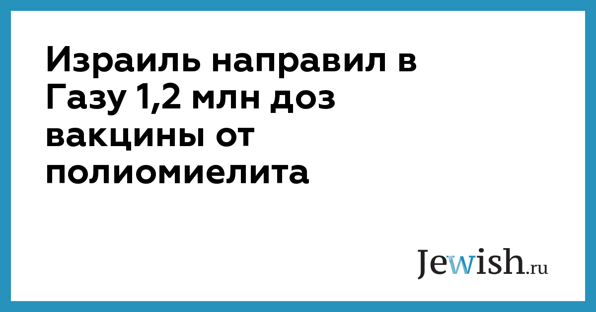 Израиль доставил в сектор Газа вакцину от полиомиелита в количестве, достаточном для 1,255 млн человек. Об этом сообщило COGAT — подразделение Министерства обороны страны, которое координирует деятельность правительства на палестинских территориях.