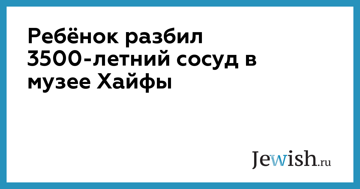 Пятилетний ребенок случайно уронил на пол древний сосуд, в течение 35 лет находившийся в экспозиции музея Хехта в Хайфе. Как сообщает Ynet, 3500-летний артефакт был обнаружен во время раскопок на территории Западного берега в идеальном состоянии.