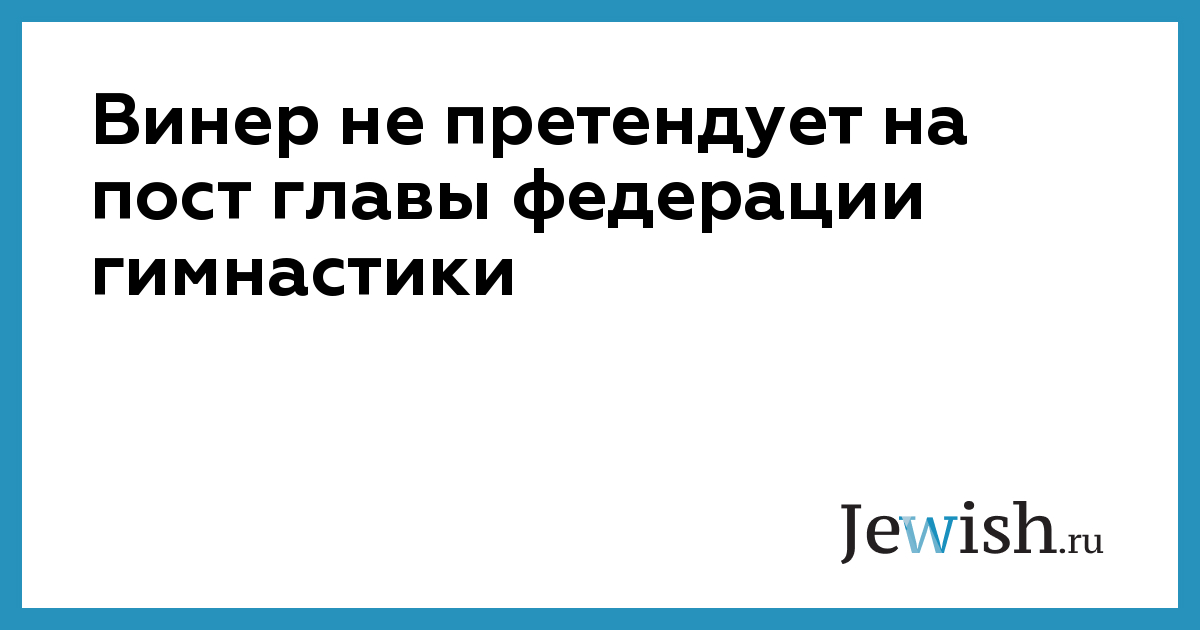 Президент Всероссийской федерации художественной гимнастики (ВФХГ) Ирина Винер не будет выдвигать свою кандидатуру на пост главы федерации гимнастики России – новой структуры, которая объединит в себе спортивную и художественную гимнастику, спортивную аэробику, спортивную акробатику и прыжки на батуте. Свое решение Винер объяснила линейностью призвания.
