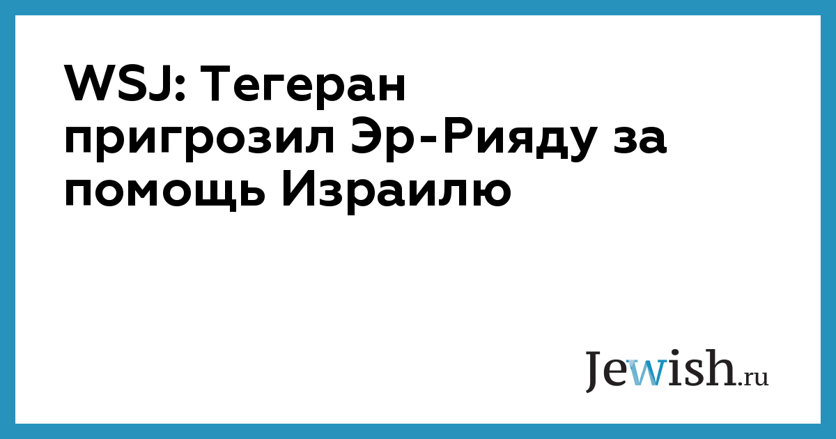 WSJ: Тегеран пригрозил Эр-Рияду за помощь Израилю