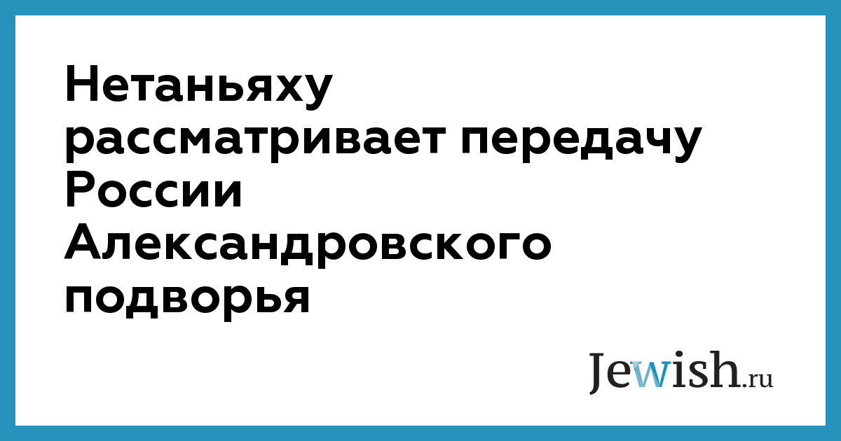 Нетаньяху рассматривает передачу России Александровского подворья