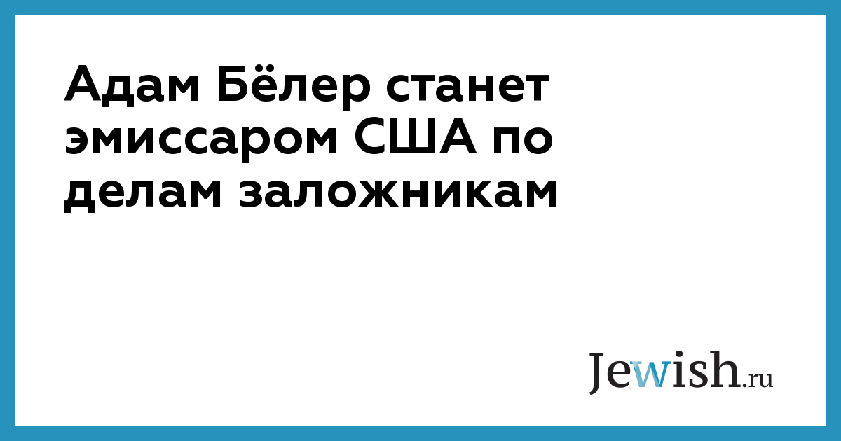 Адам Бёлер станет эмиссаром США по делам заложникам