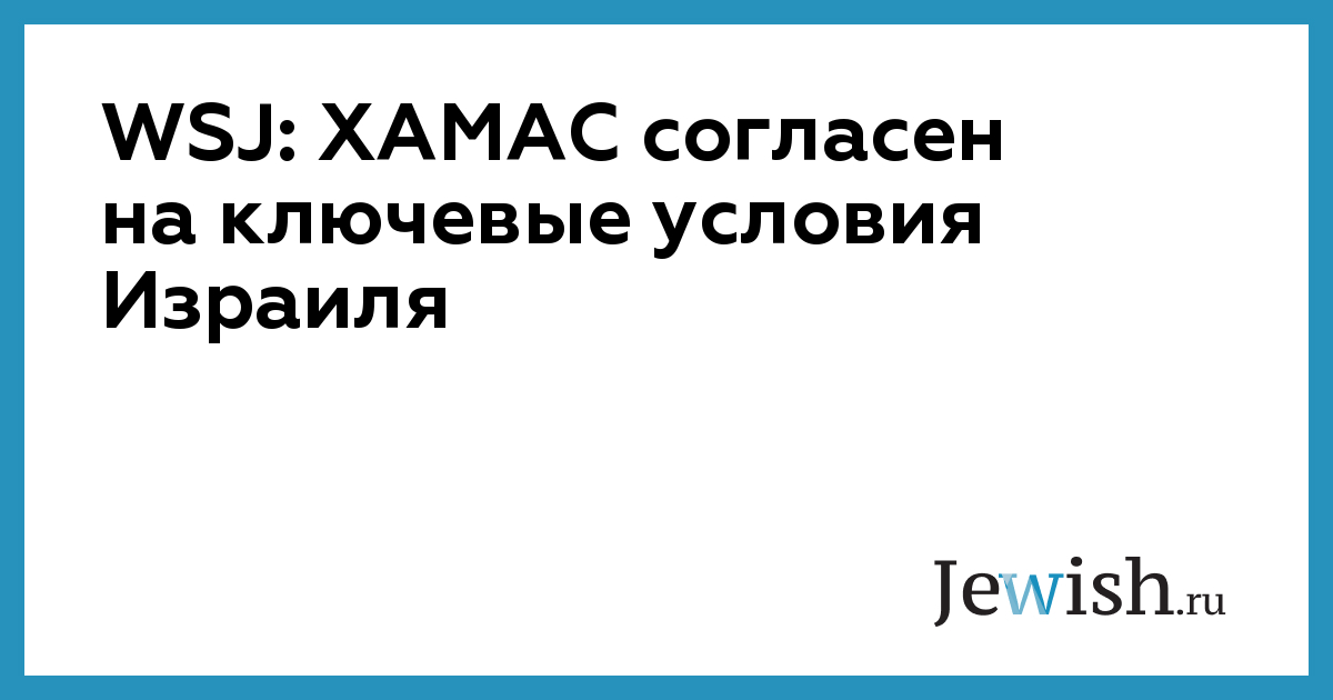 WSJ: ХАМАС согласен на ключевые условия Израиля