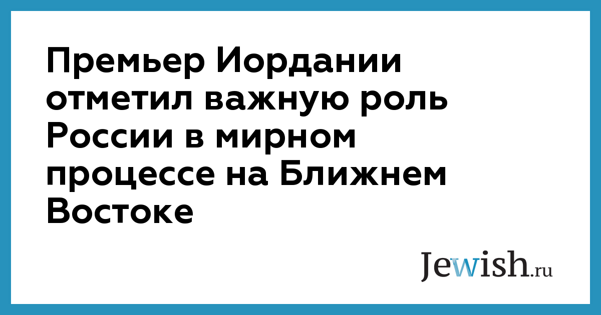 Премьер Иордании отметил важную роль России в мирном процессе на Ближнем Востоке