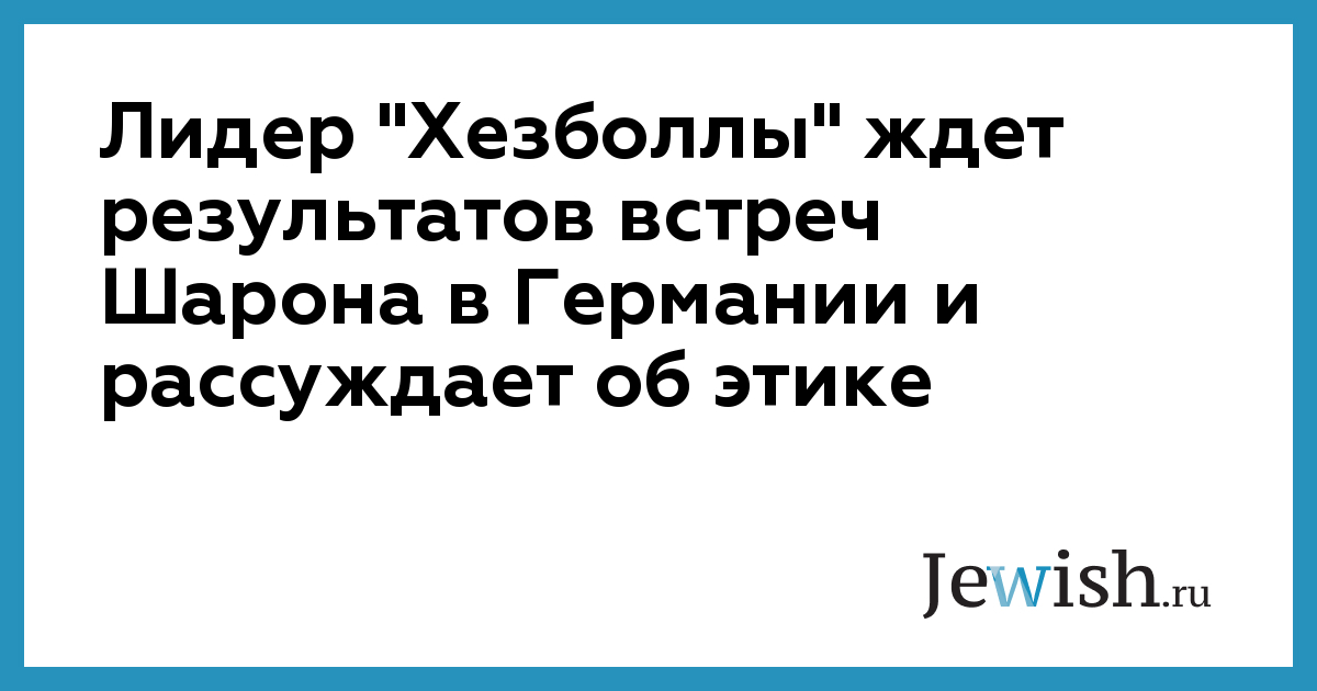 Лидер "Хезболлы" ждет результатов встреч Шарона в Германии и рассуждает об этике