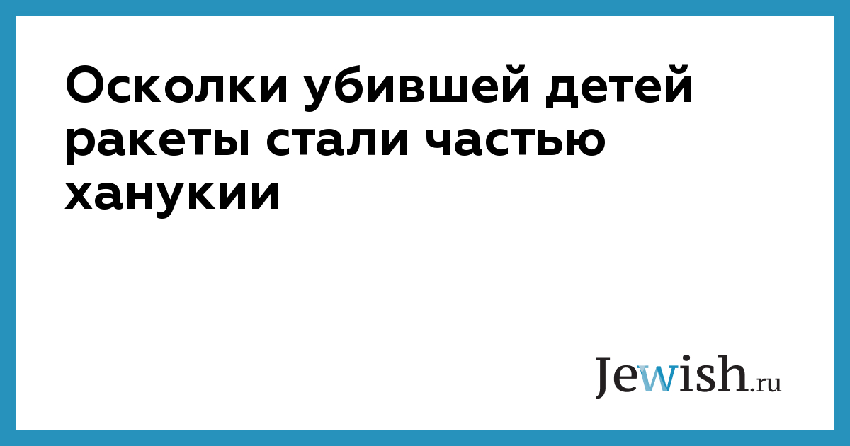 Представители израильской полиции в Северном округе превратили осколки ракет «Хезболлы», ставшие причиной гибели людей, в ханукальный светильник. Israel Hayom отмечает, что эта ханукия – «символ стойкости израильского народа, созданная в память о жертвах ракетных обстрелов».