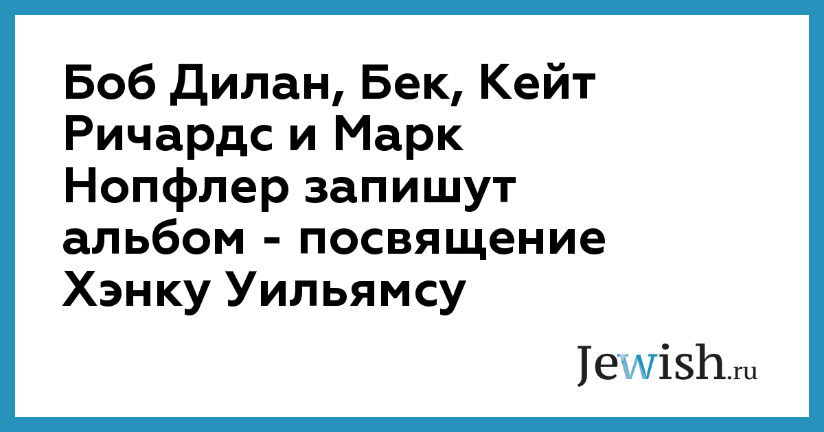 Боб Дилан, Бек, Кейт Ричардс и Марк Нопфлер запишут альбом — посвящение Хэнку Уильямсу