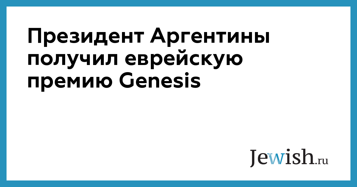 Президент Аргентины получил еврейскую премию Genesis