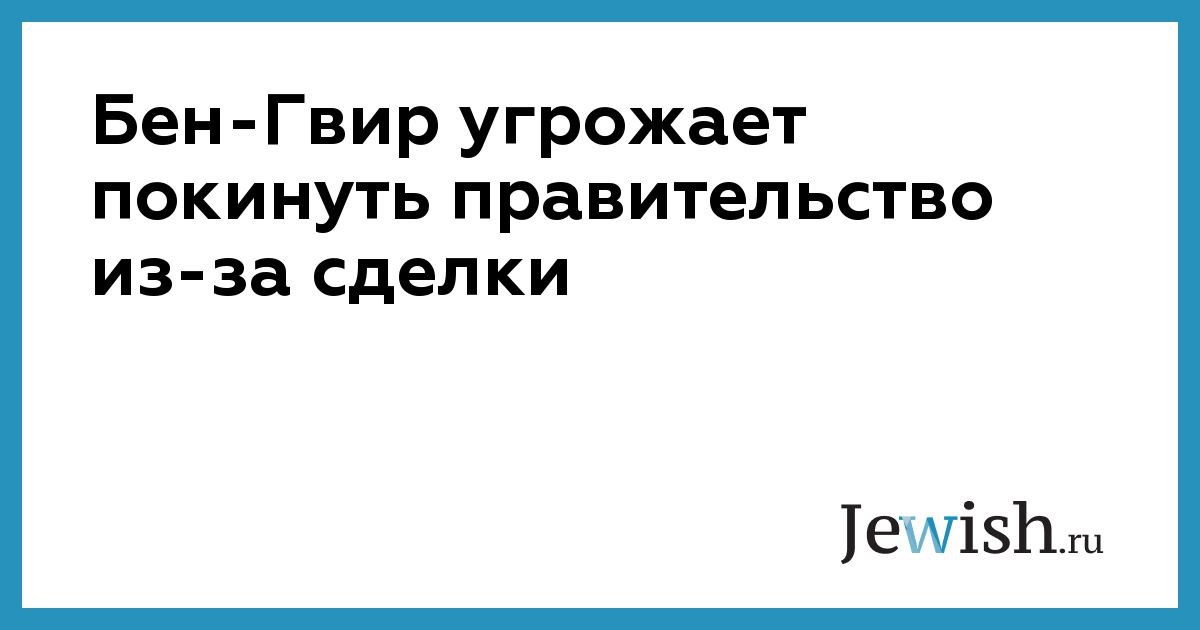 Бен-Гвир угрожает покинуть правительство из-за сделки