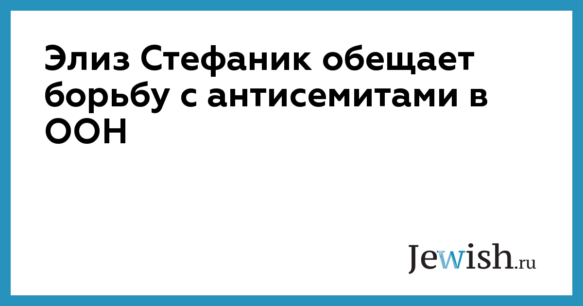 Кандидат на пост постоянного представителя США при ООН Элиз Стефаник в случае своего избрания будет активно противодействовать проявлениям антисемитизма в Организации Объединённых Наций. Об этом она заявила в ходе слушаний в сенатском комитете по иностранным делам, где обсуждалось её утверждение на эту должность. Элиз Стефаник подчеркнула, что борьба с антисемитизмом является для неё приоритетной задачей, что и стало одной из причин её заинтересованности в предложенной президентом США Дональдом Трампом должности посла в ООН.