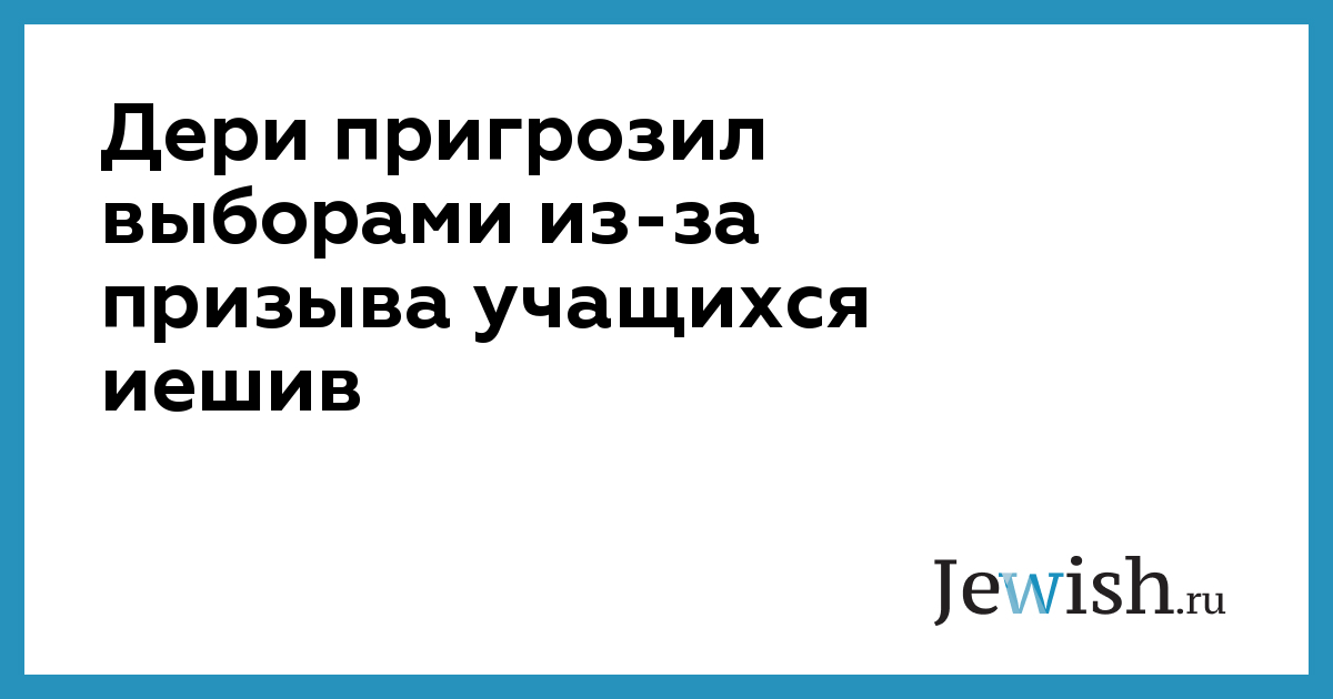 Дери пригрозил выборами из-за призыва учащихся иешив