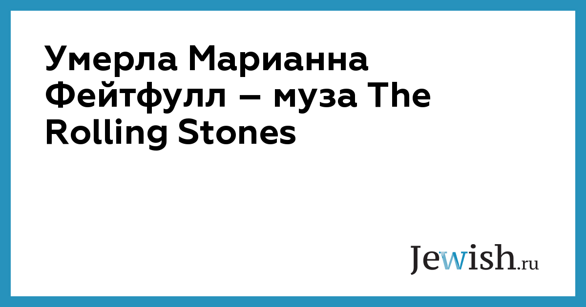В Лондоне на 79-м году жизни скончалась британская певица и актриса Марианна Фейтфулл, включенная в список «100 величайших женщин рок-н-ролла», муза The Rolling Stones. Об этом сообщает The Guardian со ссылкой на представителя артистки. «С глубокой скорбью мы объявляем о кончине Марианны Фейтфулл – певицы, автора песен и актрисы, – говорится в сообщении. – Она мирно ушла из жизни в окружении своей любящей семьи в Лондоне. Нам будет ее очень не хватать».