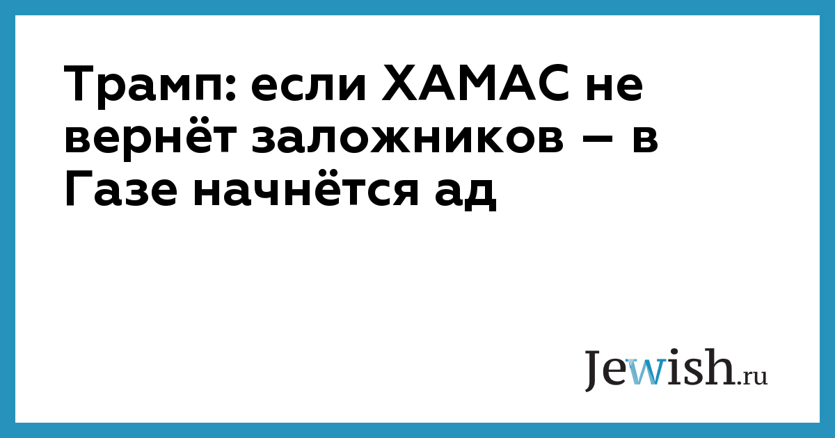 «Я думаю, если все заложники не будут возвращены до полудня субботы – наступит то самое время. Тогда все ставки будут сделаны и разверзнется ад. Я имею в виду, что ХАМАСу их совершенно точно стоит вернуть к 12 часам в субботу», – отметил Трамп, признав, впрочем, что в случае окончательного срыва сделки многие заложники из тех, кто все еще остается в Газе, могут погибнуть.