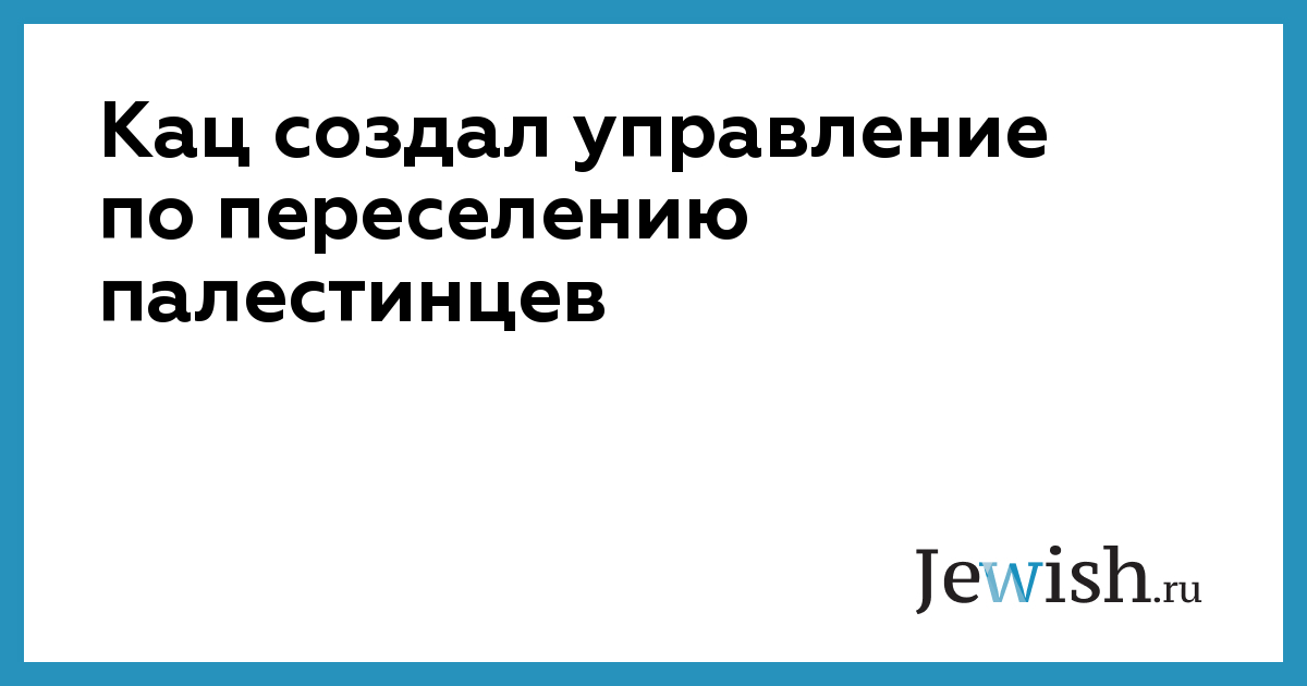 Кац создал управление по переселению палестинцев