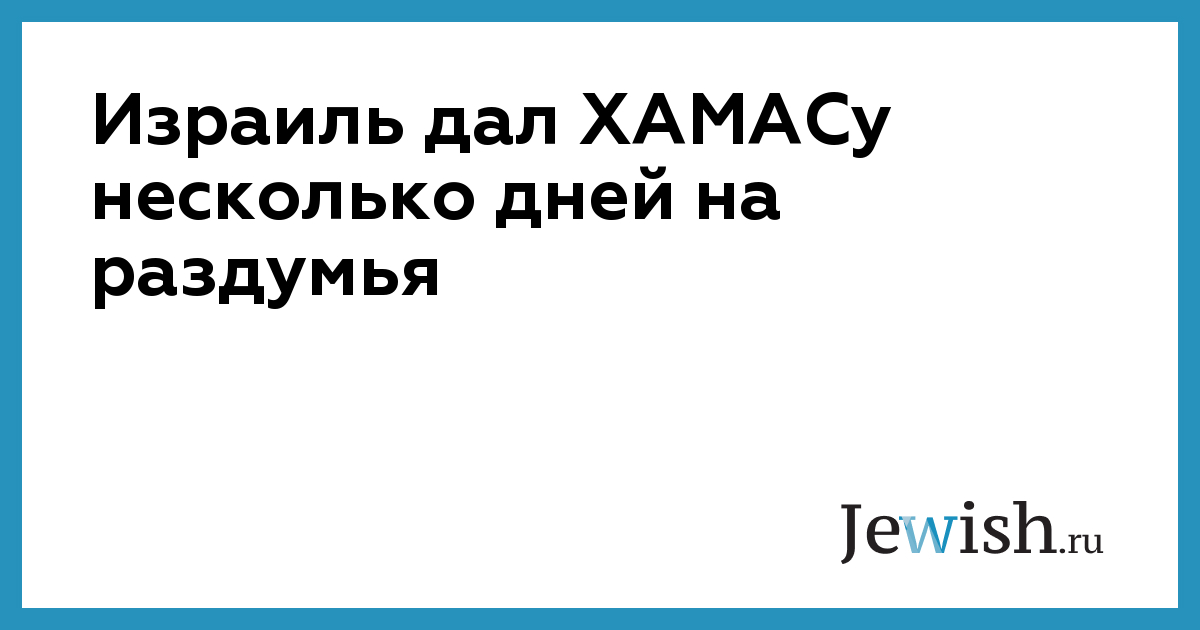 «Мы готовы дать шанс в виде нескольких дней, но не позволим этому длиться вечно. Если станет ясно, что переговоры ни к чему не ведут, мы возобновим военные действия в Газе», – отметили собеседники издания.