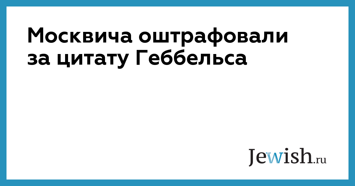 Кузьминский суд приговорил к штрафу жителя Москвы Александра Головина, который опубликовал в интернете картинку с цитатой начальника управления пропаганды НСДАП Йозефа Геббельса.