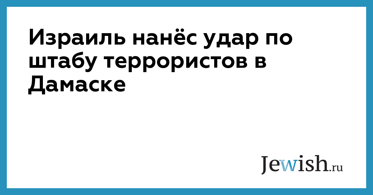 Силы ВВС ЦАХАЛа нанесли удар «по террористическому командному центру в Дамаске», сообщила пресс-служба Армии обороны Израиля после сообщений сирийских СМИ о ракетной атаке по столице страны. Атакованный командный центр использовался «для планирования и управления деятельностью» запрещенной в России террористической группировкой «Исламский джихад» против Государства Израиль, добавили военные.