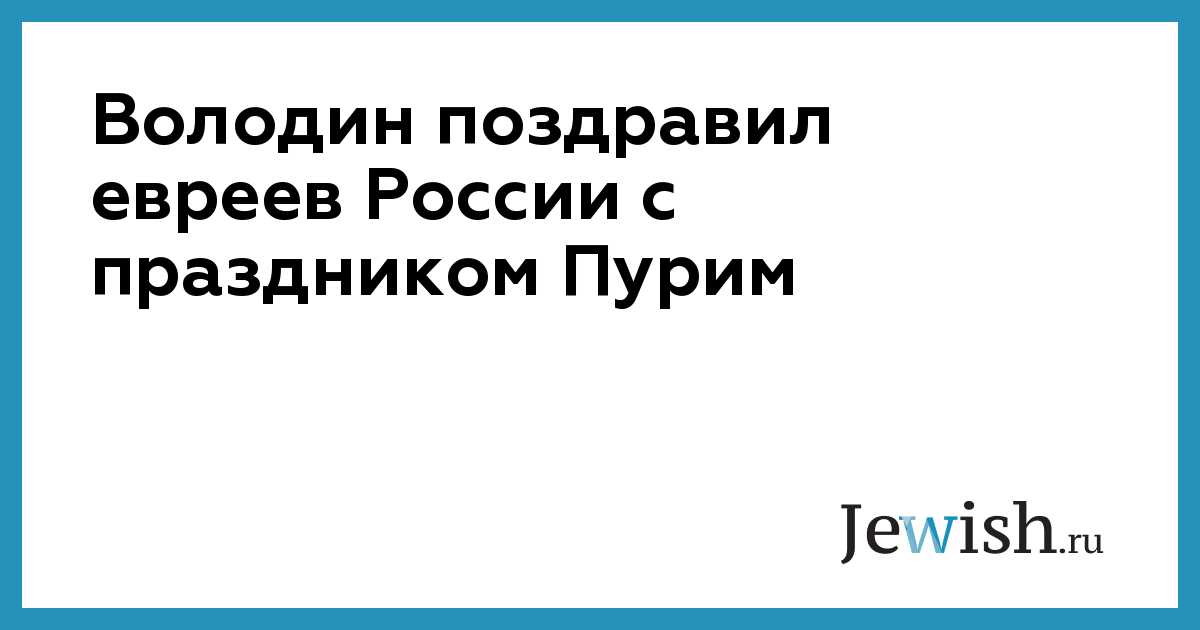 «Поздравляю со светлым праздником Пурим, в основе которого — традиции сплоченности и милосердия, — приводятся слова Володина на сайте Госдумы. — Бережно храня и передавая из поколения в поколение многовековые традиции, еврейская община вносит вклад в развитие многонационального и многоконфессионального диалога. Способствует сохранению культурного многообразия, укреплению взаимопонимания и единства нашего общества».