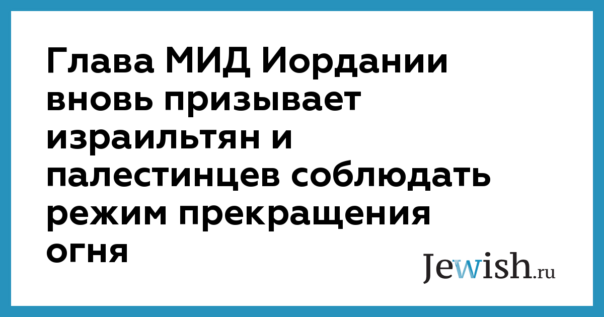 Глава МИД Иордании вновь призывает израильтян и палестинцев соблюдать режим прекращения огня
