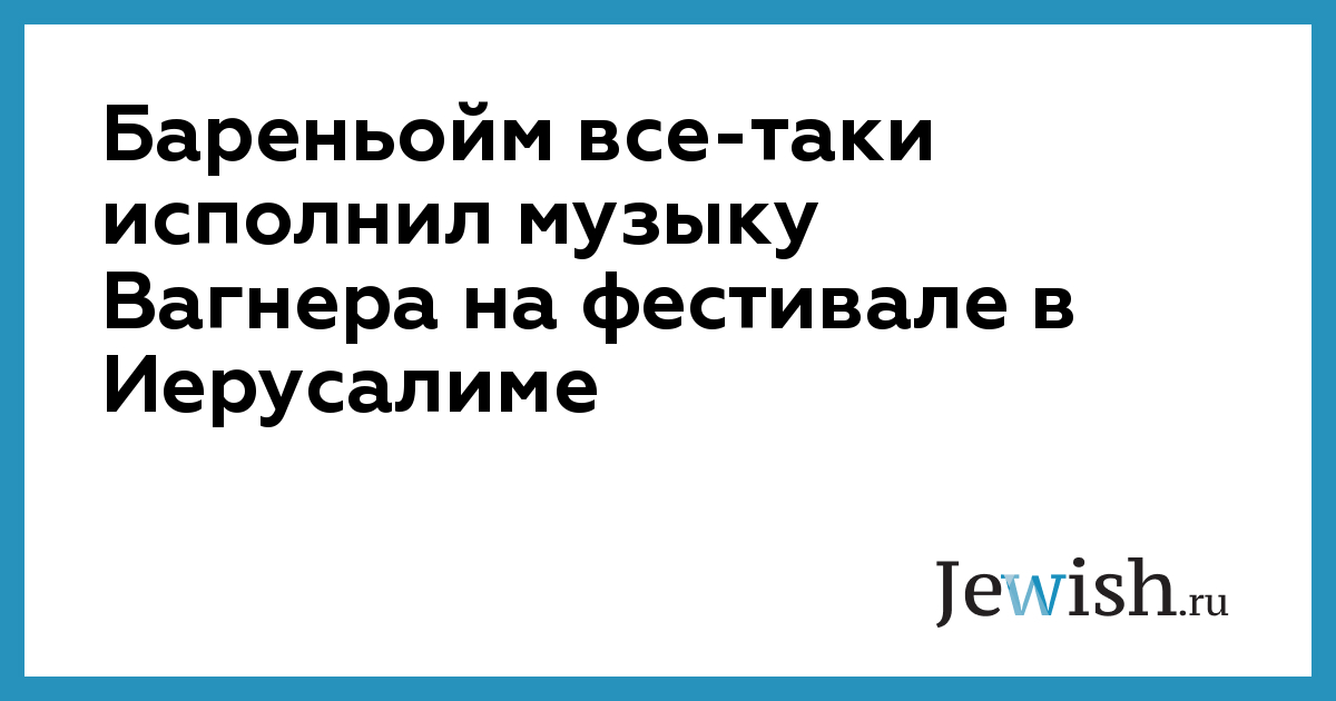 Бареньойм все-таки исполнил музыку Вагнера на фестивале в Иерусалиме