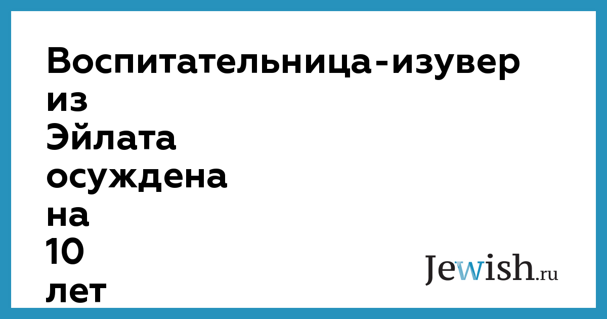 Во вторник, 1 апреля, окружной суд Беэр-Шевы приговорил воспитательницу детского сада, 65-летнюю Илану Кобер из Эйлата, к 10,5 года тюрьмы. Как сообщает Ynet, в июне прошлого года она была признана виновной в 360 случаях физического насилия над детьми и 26 эпизодах издевательств над ними же.