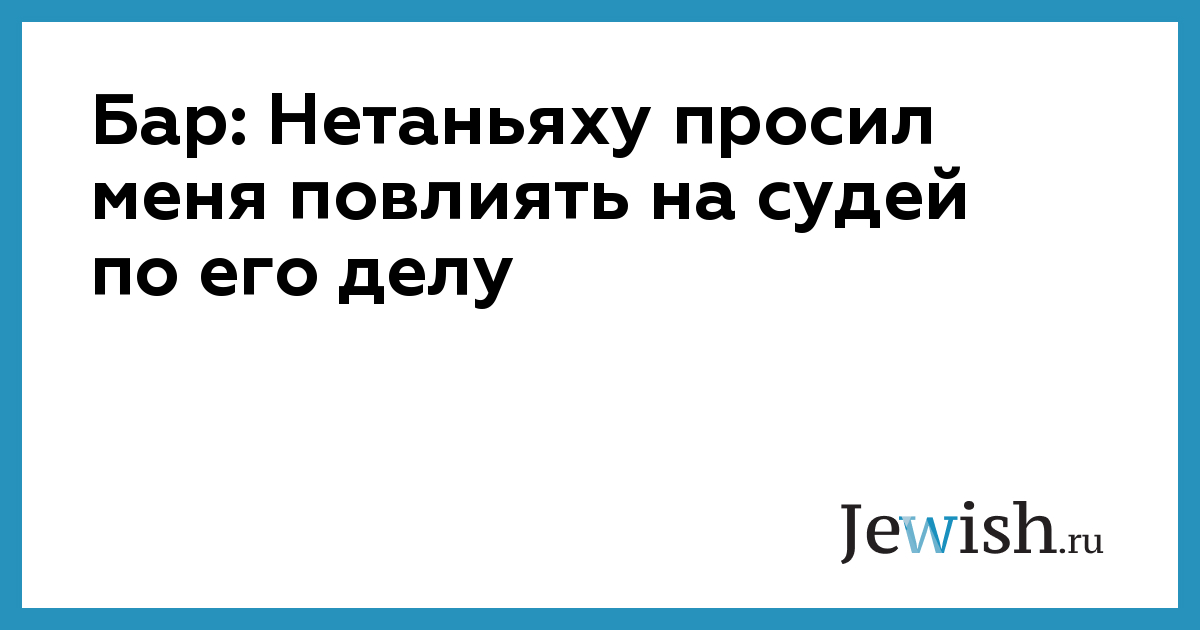 Бар: Нетаньяху просил меня повлиять на судей по его делу