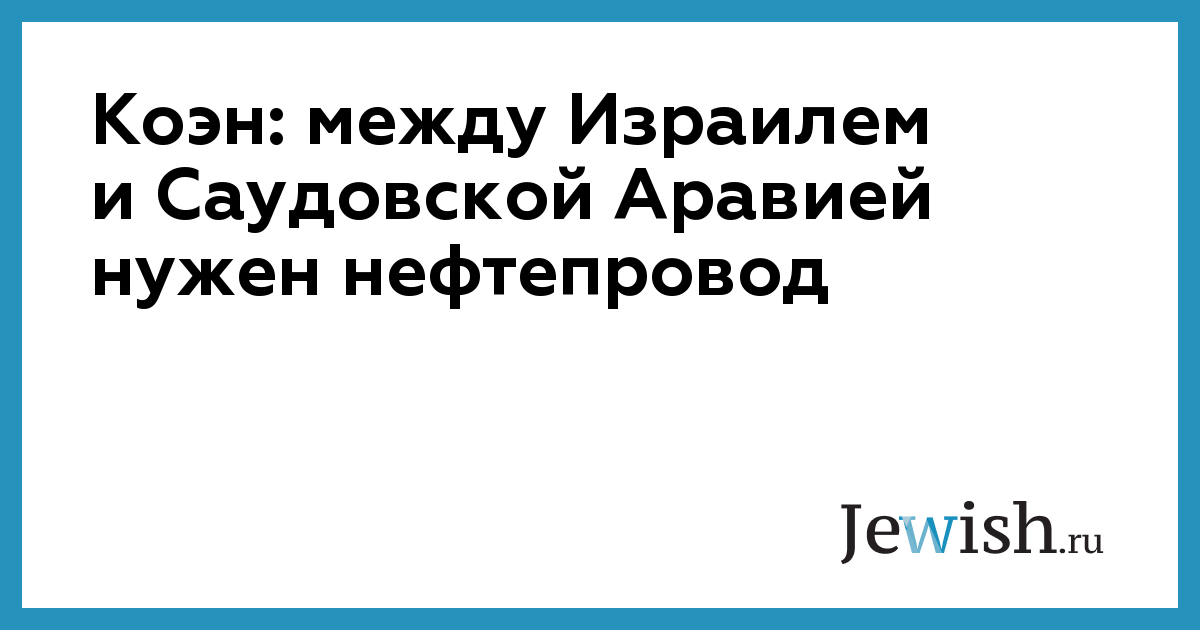 Коэн: между Израилем и Саудовской Аравией нужен нефтепровод