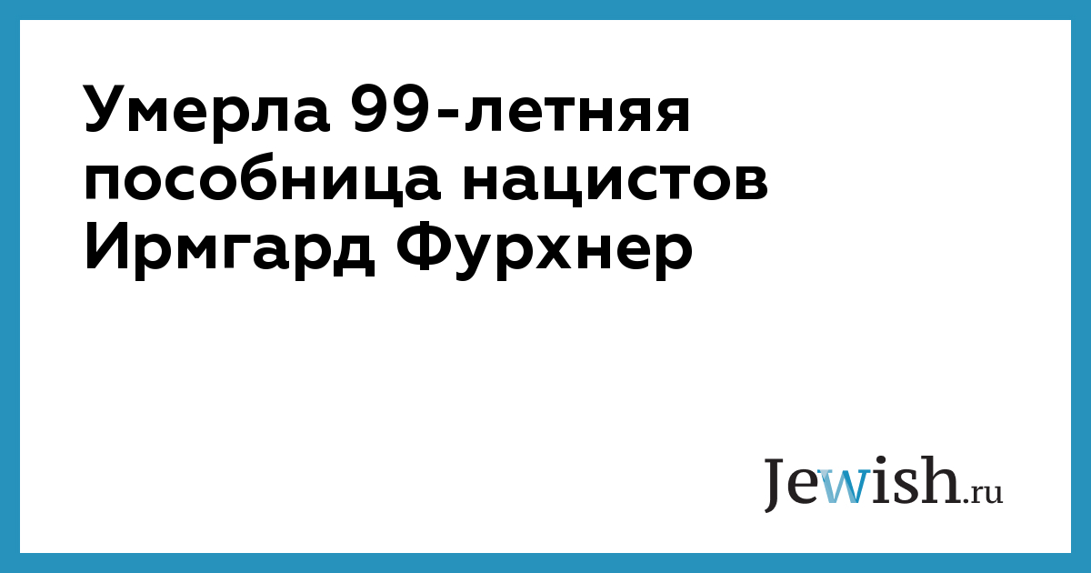 99-летняя Ирмгард Фурхнер, ранее признанная виновной в соучастии в убийстве более 10,5 тыс. узников концлагеря Штуттгоф во время Второй мировой войны, скончалась в доме престарелых в Квикборне, Германия. По данным портала Schleswig-Holsteinischer Zeitungsverlag, она умерла еще 14 января 2025-го, однако до СМИ эта новость добралась только сейчас.