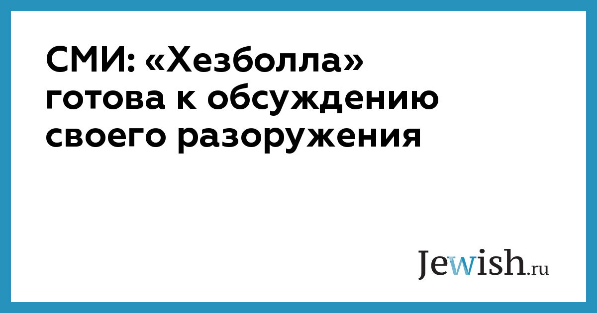 Базирующаяся в Ливане шиитская группировка «Хезболла» готова обсудить вопрос своего разоружения, если израильские войска будут полностью выведены из Ливана. Об этом сообщает агентство Reuters со ссылкой на неназванного представителя руководства группировки. «Мы готовы обсудить будущее своего военного арсенала с президентом республики генералом Джозефом Ауном, когда Израиль выведет свои войска из пяти районов на юге Ливана и прекратит агрессию против ливанцев», – приводит Reuters слова собеседника.
