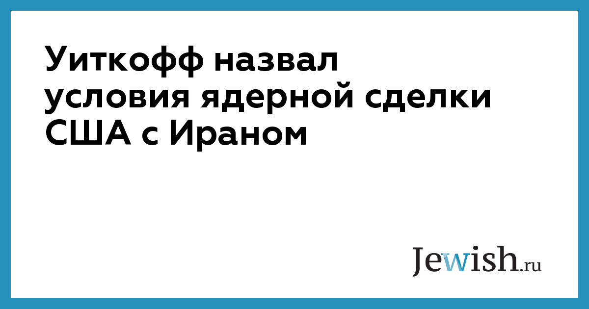 «Сделка с Ираном будет заключена только в том случае, если это будет сделка под эгидой президента США Дональда Трампа. Любое окончательное соглашение должно установить рамки для мира, стабильности и процветания на Ближнем Востоке, а это означает, что Иран должен остановить и ликвидировать свою программу ядерного обогащения и создания оружия массового уничтожения», – написал Уиткофф в профиле соцсети.