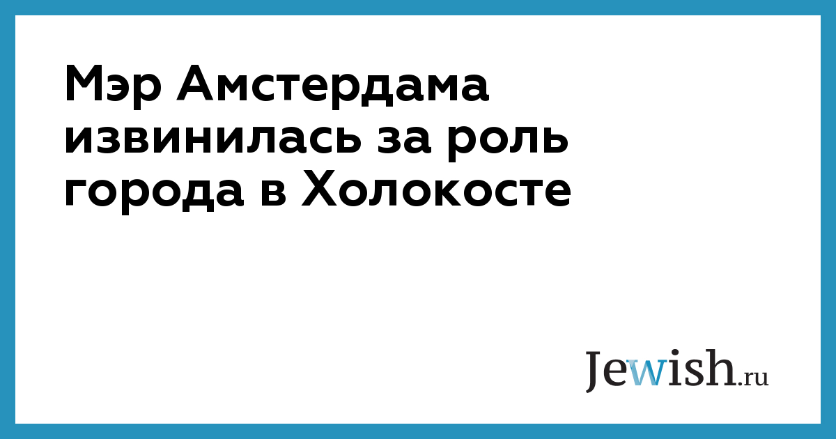 Мэр Амстердама Фемке Халсема, выступая на мероприятии, приуроченном ко Дню Катастрофы и героизма еврейского народа, принесла извинения за «активную роль» властей голландской столицы в преследовании и гибели евреев во время Второй мировой войны. «От имени городского правительства я приношу свои извинения за произошедшее», – заявила Халсема, подчеркнув, что правительство города не проявило героизма, решительности и милосердия, необходимых в то время, и не смогло защитить своих еврейских жителей.