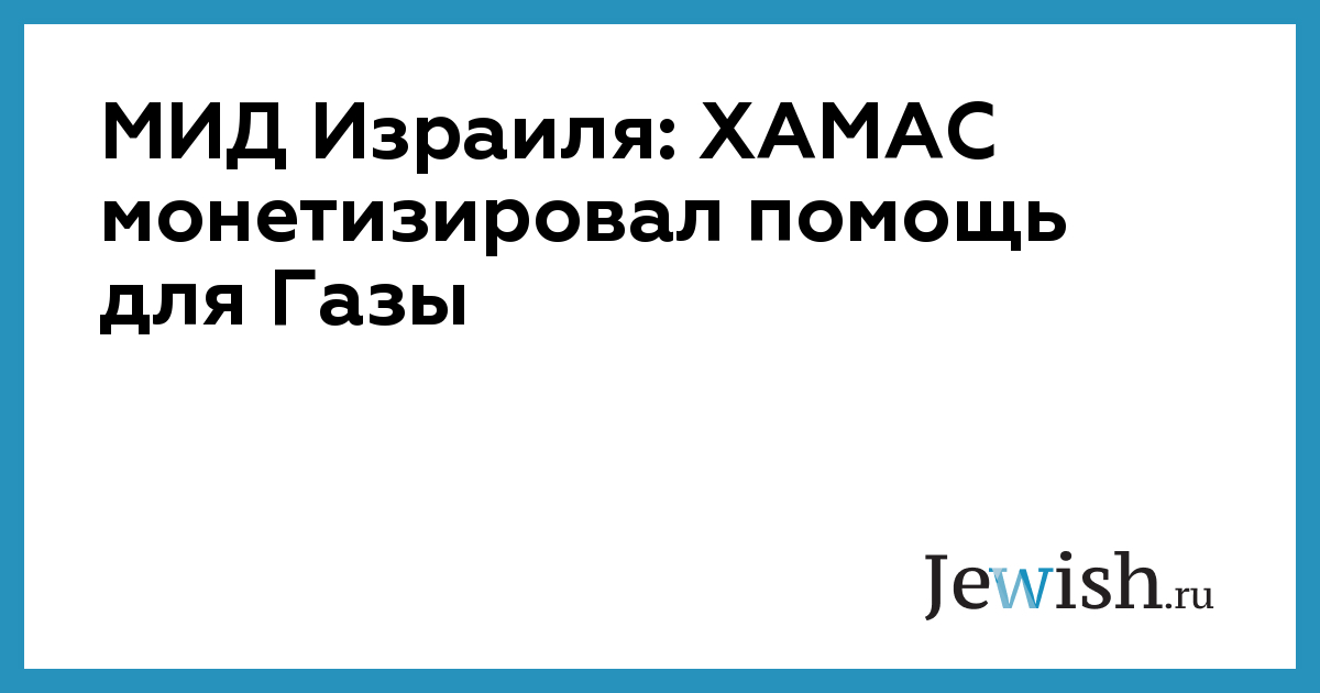 МИД Израиля: ХАМАС монетизировал помощь для Газы