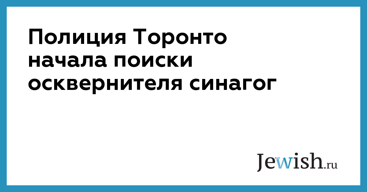Канадская полиция разыскивает мужчину, предположительно, причастного к осквернению нескольких синагог в Норт-Йорке на севере Торонто. По данным портала Toronto Sun, ссылающегося на местных правоохранителей, последние инциденты произошли 18 мая – в тот день небритый мужчина средних лет, одетый в темно-зеленый худи, темную бейсболку и светлые брюки, «испортил вывески перед тремя синагогами» в том районе и скрылся с места преступления на темно-сером Ford. Что именно сделал с вывесками подозреваемый – не уточняется.
