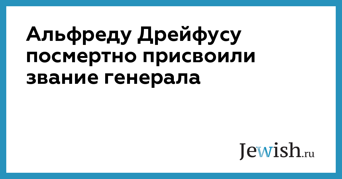 Комитет по обороне Национального собрания Франции единогласно поддержал законопроект о посмертном присвоении полковнику Альфреду Дрейфусу, несправедливо обвиненному в государственной измене и ставшему одним символом антисемитизма во Франции, звания бригадного генерала. Принятие законопроекта спустя 90 лет после смерти Дрейфуса было названо важным шагом в истории как самого Дрейфуса, так и Республики.