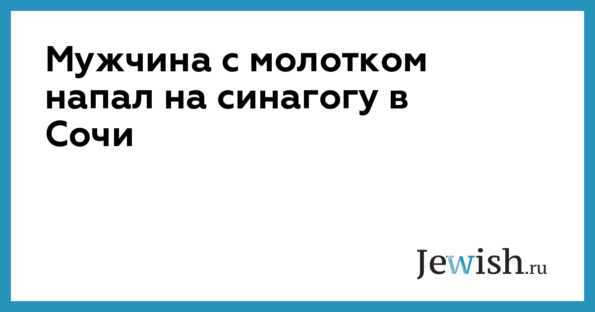 В пятницу, 30 мая, неизвестный мужчина напал с молотком на синагогу в Сочи, сообщает агентство РБК со ссылкой на пресс-службу главного раввина России Берла Лазара. Как сообщает агентство, мужчина подъехал к синагоге на такси, достал из рюкзака молоток и пытался проникнуть на территорию религиозной организации. Он выломал калитку и попал во двор, но проникнуть в само здание синагоги ему не удалось. Он стал закидывать его камнями, снимая своё нападение на мобильный телефон. В этот момент в синагоге шёл детский кружок. Во время нападения никто не пострадал. Нападавший был задержан полицией.