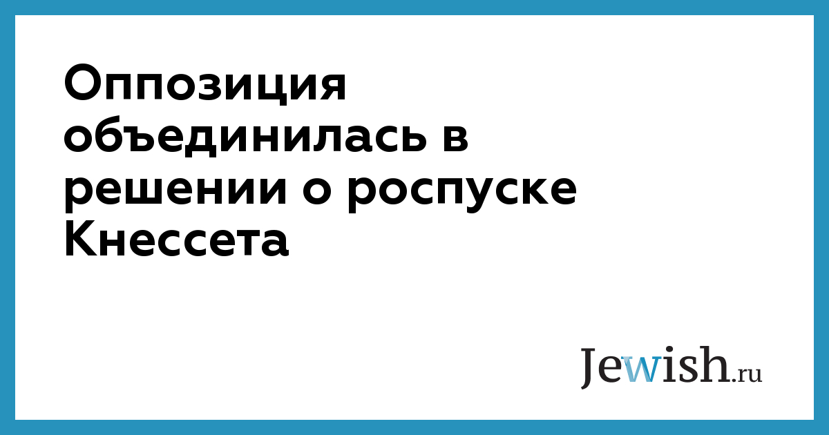 Оппозиционные фракции в Кнессете опубликовали совместное заявление, сообщив, что в среду, 11 июня, вынесут на голосование законопроект о роспуске парламента. В заявлении указано, что по общему согласию всех фракций принято решение снять с повестки дня все другие законодательные инициативы, «чтобы сосредоточить все усилия на одной цели – роспуске правительства».