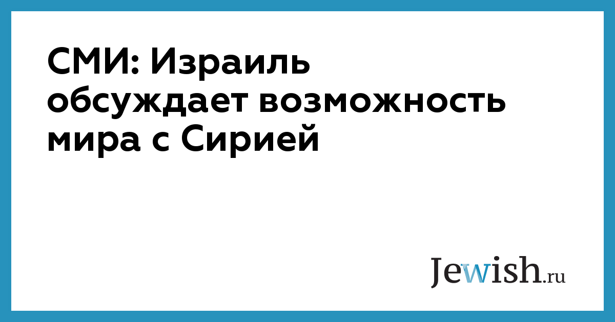 СМИ: Израиль обсуждает возможность мира с Сирией