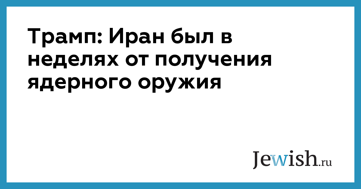 Президент США Дональд Трамп в общении с журналистами в Белом доме заявил, что Иран находился в нескольких неделях от создания ядерного оружия, сообщает телеканал NBC. Отвечая на вопрос о том, что он может сказать американцам, не желающим вступления США в еще один военный конфликт, Трамп подчеркнул, что он также не хочет вмешательства, но уже на протяжении 20 лет, а возможно и дольше, утверждает, что Иран не должен обладать ядерным оружием. «Я говорю это уже давно, и я думаю, что они были в нескольких неделях от того, чтобы получить его», — заявил Трамп.