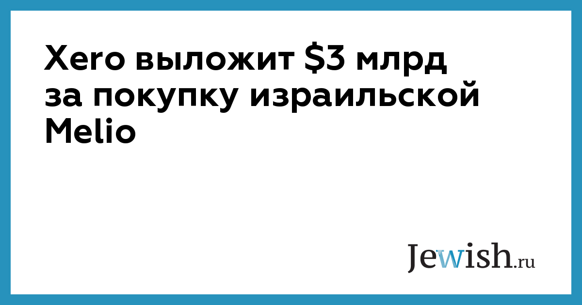 Новозеландская компания Xero Limited, специализирующаяся на разработке облачного бухгалтерского программного обеспечения, объявила о заключении соглашения о приобретении 100% акций израильской финтех-компании Melio. В рамках сделки Xero единомоментно выплатит $2,5 млрд наличными и акциями, еще $500 млн пройдут в виде поэтапных выплат, сообщает Globes. Xero Limited обязалась сохранить рабочие места для сотрудников Melio, штат которой превышает 600 человек.